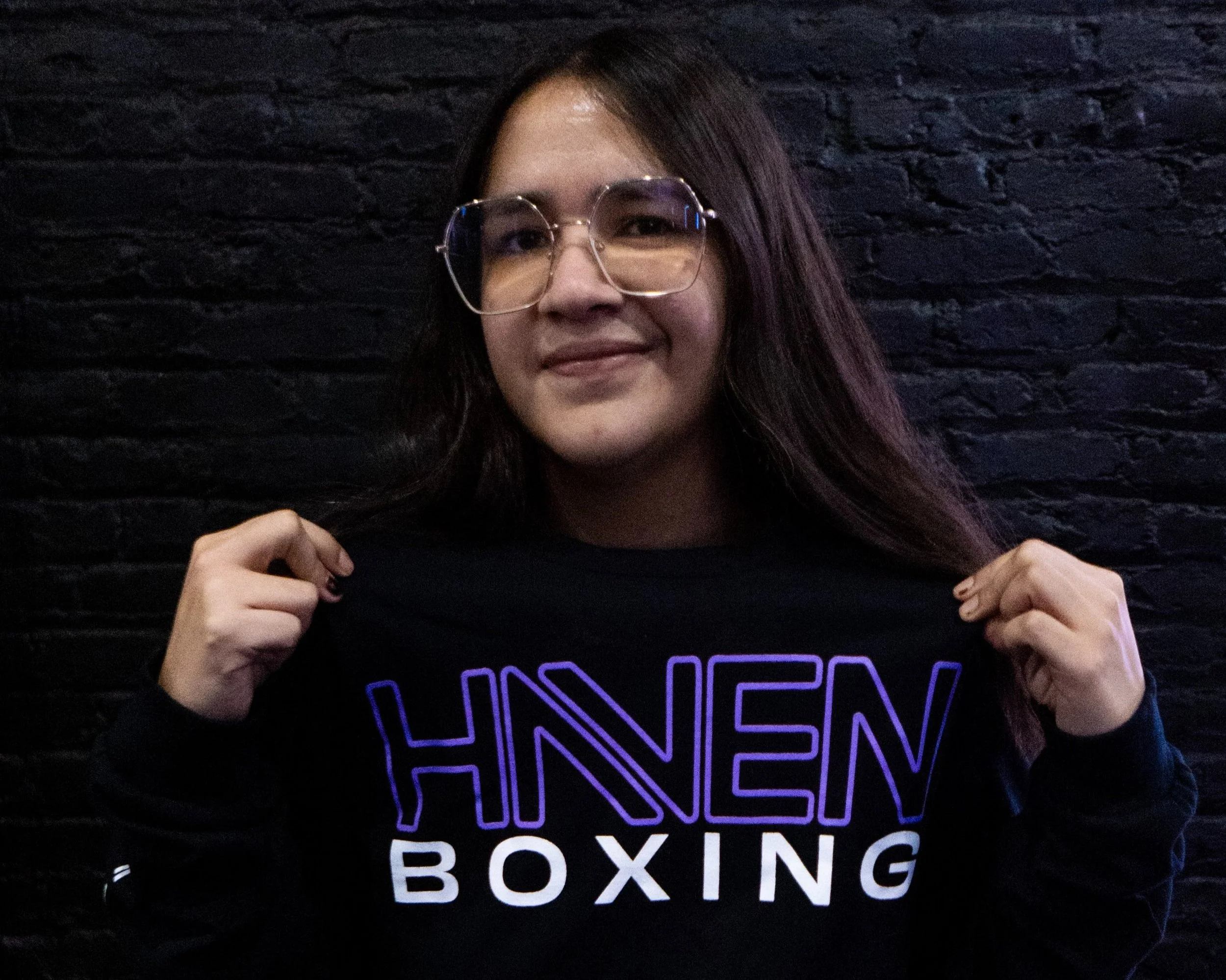 HAVEN DESIGNER, FRONT DESK QUEENA Dominicana born and raised in Queens, NY- Dee Rodriguez has been making art since she was little. She’s gone from dental assistant, to e-commerce baddie, to working in publishing- all to have her heart always lead her back to art and creation. Outside of working with Queens Public Library and freelance graphic design, Dee helps to bring the HAVEN aesthetic to life (have you seen the logo??), and ensures everyone feels welcome when they walk through the door of the gym. If you see her at the front desk, or on the bag practicing a mean hook, make sure to say hello and ask to see her nails. And if you’re playing a new video game, definitely tell her about it -- there’s a chance she already made some art for it!